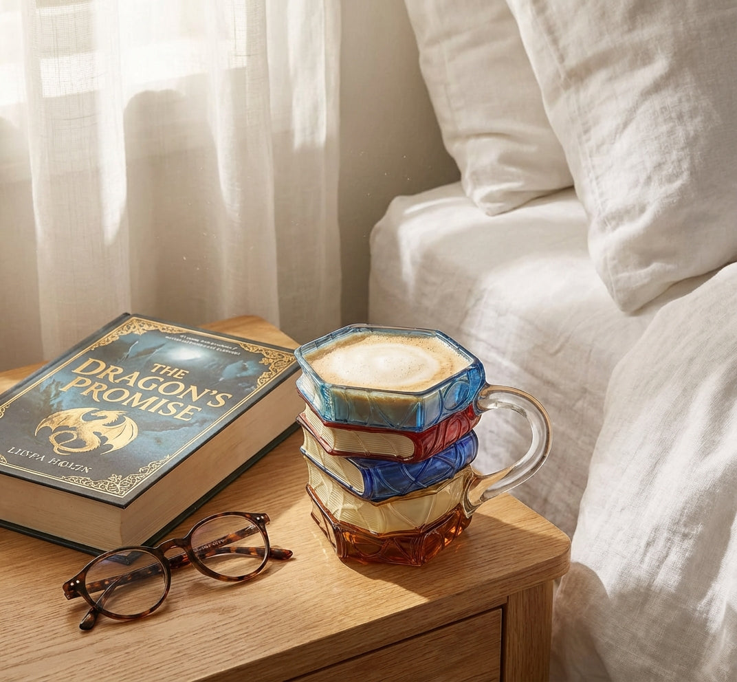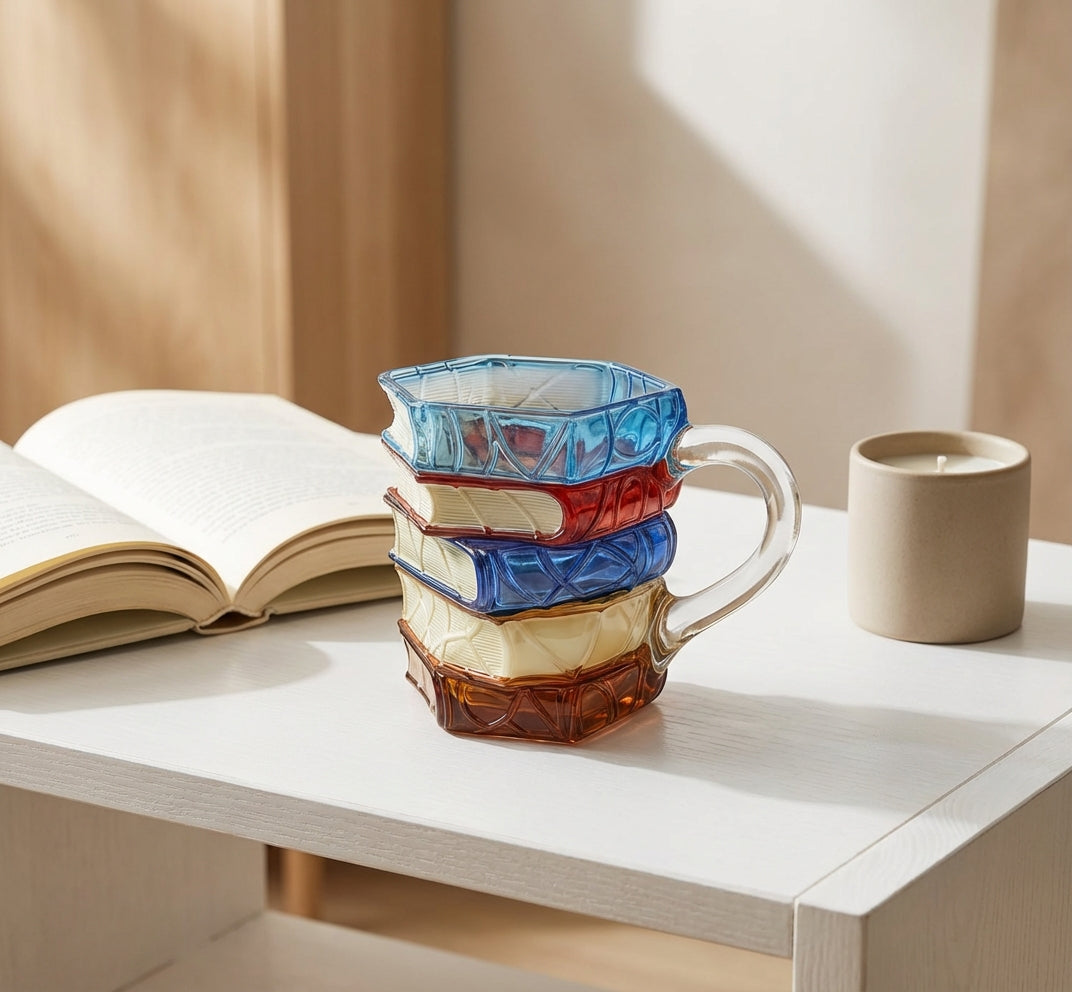 A unique mug designed for true book lovers. The detailed stacked-book design and vibrant glass look make it a stylish addition to any desk, shelf, or reading corner.
